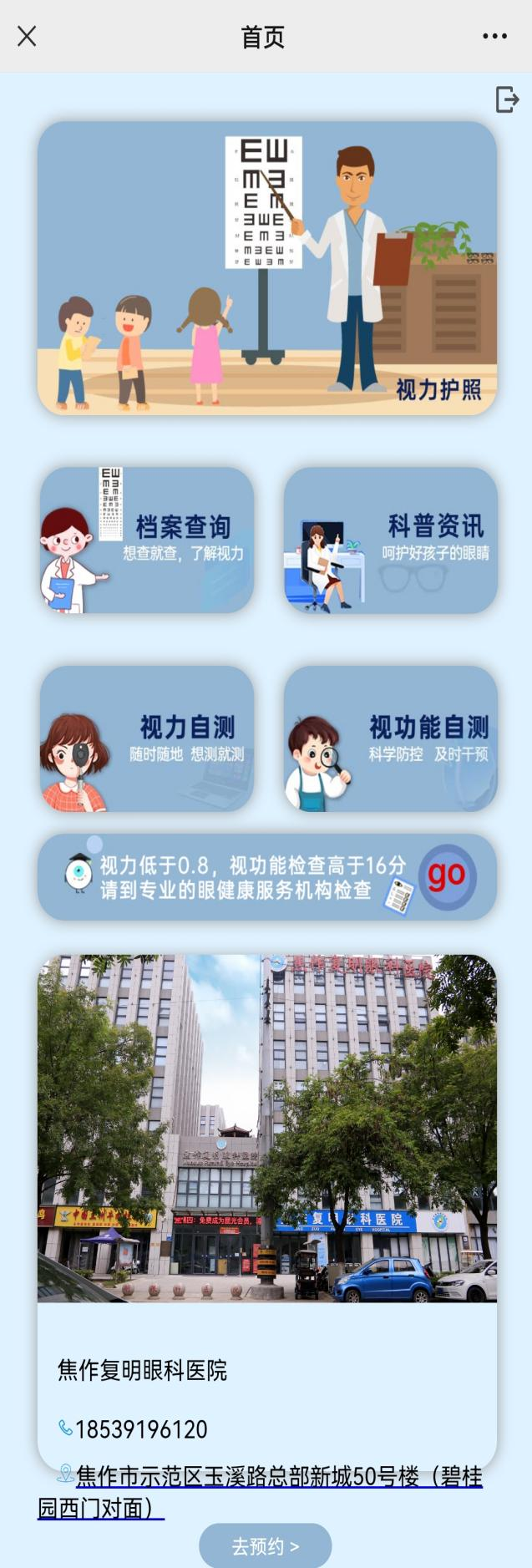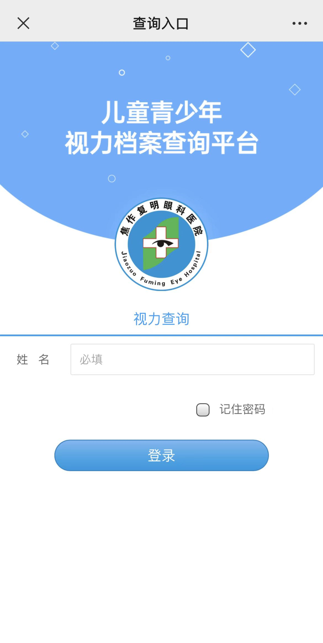 現階段結束的校區,學生和家長可通過“焦作復明眼科醫院服務平臺”公眾號平臺查詢學生視力健康信息。